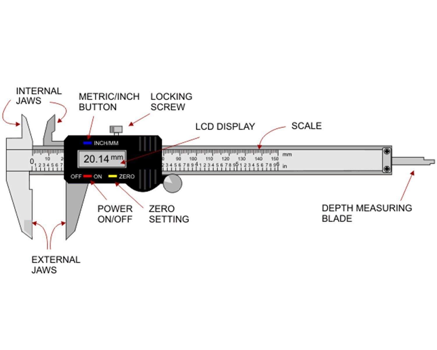 Internal, external and height dimensions can be easily and accurately meausured