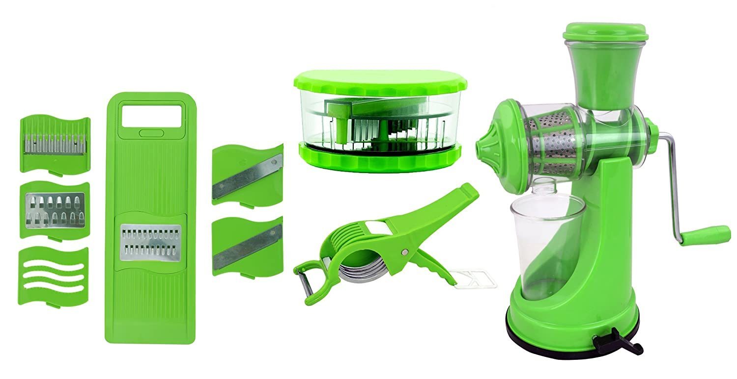 Your Brand Kitchen Combo - Manual Juicer, 6 in 1 Slicer, Multi Crusher and Veg Cutter with Peeler