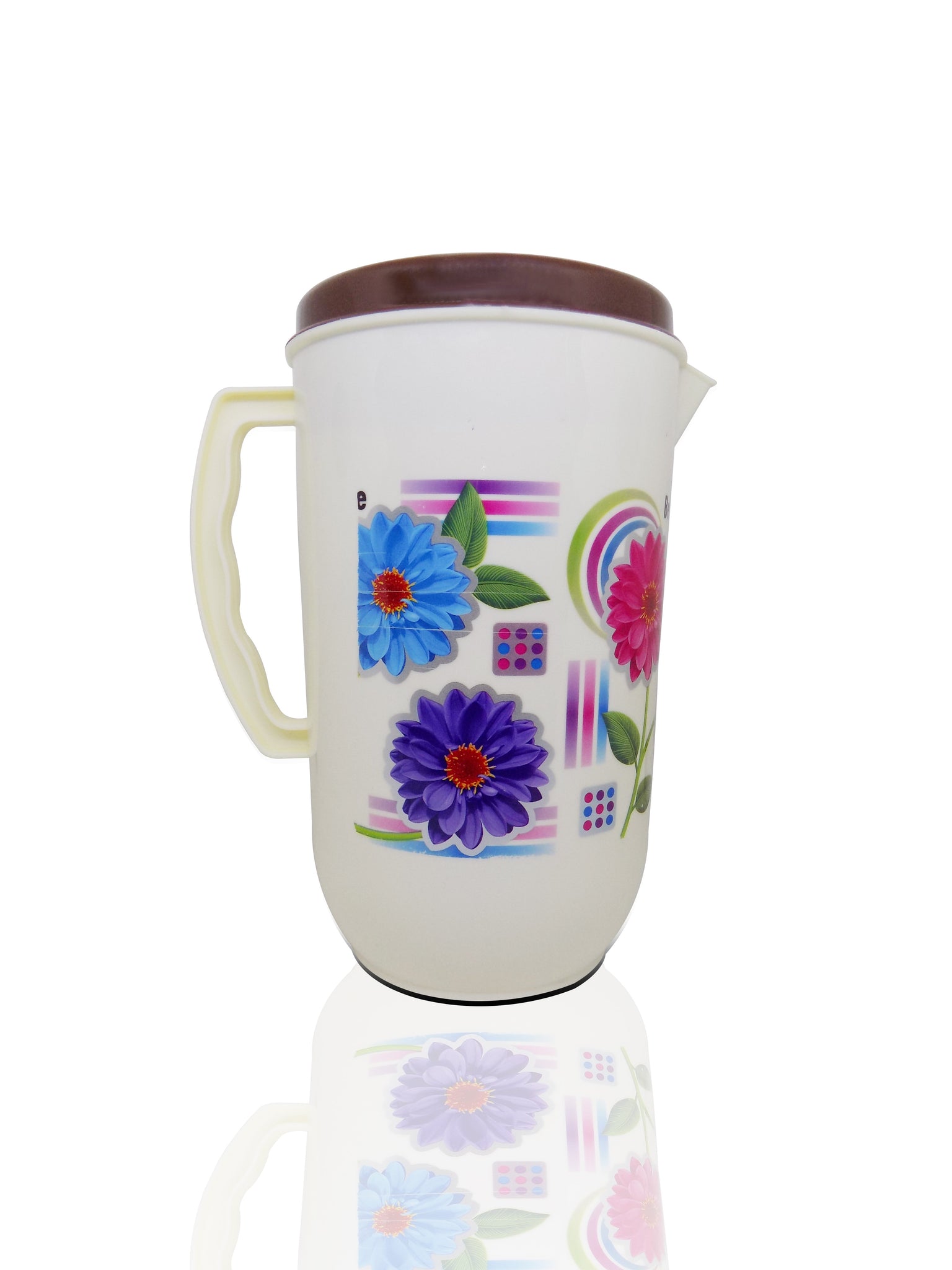 Overview this plastic water jug is the perfect product to help you cool off in the rising heat. This plastic jug will help you to stay hydrated through the day. This efficient and pretty jug is a worthy addition to your home. Material and design this jug is made of virgin plastic material so you can use it without worrying about your family's health. The jug is with a floral print and a lid. Functional and decorative this jug is ideal for storing water or juice especially when you have guests thanks to its large capacity. The clear gloss finish on this jug gives it an attractive look that will blend well with your dining room or kitchen. Suitable for any occasion, this jug is a practical and useful gift that your friends and family will love. Attractive printed jugs made of food grade pp material ideal for table top use due to the special pouring mechanism provided in the lid refrigerator safe wash with mild liquid soap and sponge dishwasher safe