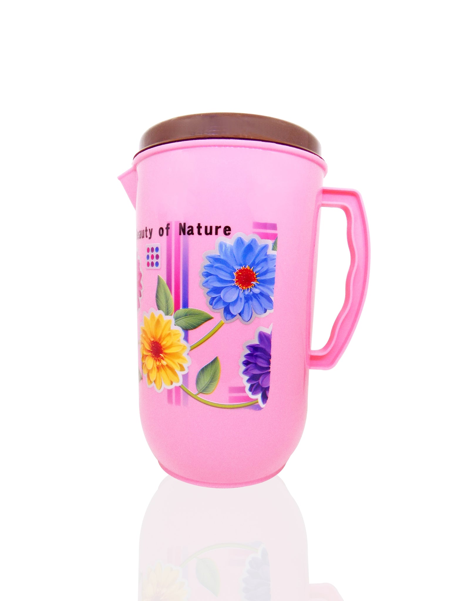 Overview this plastic water jug is the perfect product to help you cool off in the rising heat. This plastic jug will help you to stay hydrated through the day. This efficient and pretty jug is a worthy addition to your home. Material and design this jug is made of virgin plastic material so you can use it without worrying about your family's health. The jug is with a floral print and a lid. Functional and decorative this jug is ideal for storing water or juice especially when you have guests thanks to its large capacity. The clear gloss finish on this jug gives it an attractive look that will blend well with your dining room or kitchen. Suitable for any occasion, this jug is a practical and useful gift that your friends and family will love. Attractive printed jugs made of food grade pp material ideal for table top use due to the special pouring mechanism provided in the lid refrigerator safe wash with mild liquid soap and sponge dishwasher safe