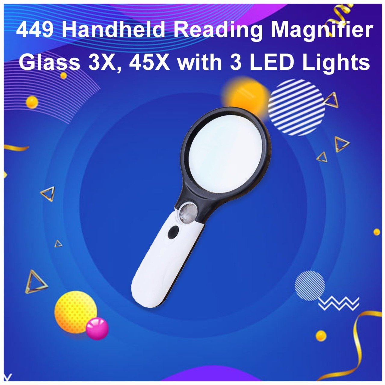 449 Handheld Reading Magnifier Glass 3X, 45X with 3 LED Lights for Reading/Maps/Watch Repair