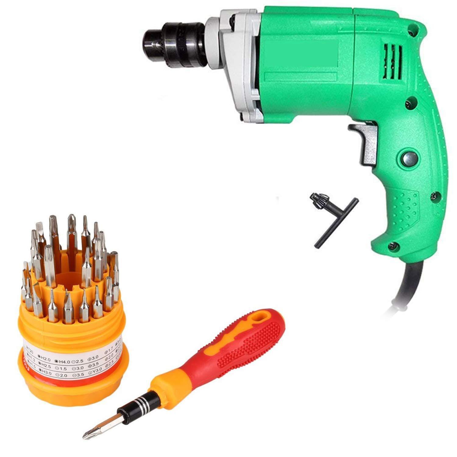 Overview Whether you are looking for a tool kit for personal or professional use, you must checkout this drill machine with tool kit set. This drill machine and the tool kit can be perfect for drilling a hole. Made of the finest quality plastic and steel, this tool kit and drill machine is easy to operate as well as maintain.Features This tool kit from the store of SK comes handy when you have to drill a hole in the wall at home or carry out a minor repairing job. The drill machine that comes with this set has a semi-metal body.