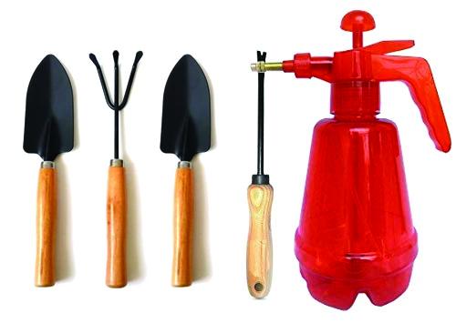 Your Brand Gardening kit - Hand Cultivator, Small Trowel, Garden Fork, Hand Weeder Straight & Manual Pressure Sprayer Bottle 1.5 Litre (5PCS)
