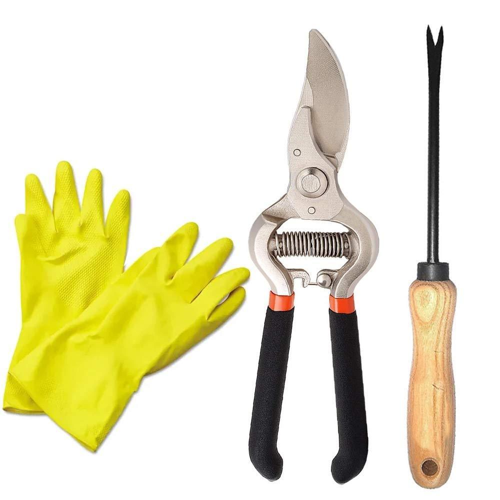 Your Brand Garden Combo - Garden Shears Pruners Scissor (8-inch) & Hand Weeder Straight with 1-Pair Rubber Gloves