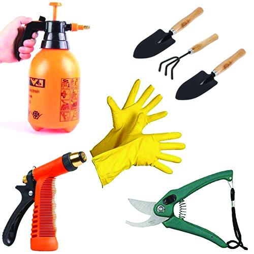Your Brand Gardening Tools - Water Lever Spray Gun | Cultivator, Small Trowel, Garden Fork | Pressure Garden Spray Bottle | Flower Cutter | Yellow Gloves