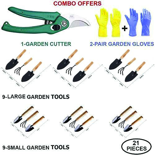 Your Brand Gardening 21pcs Super Combo -Hand Cultivator(Big 3pc + Small 3pc), Small Trowel (Big 3pc + Small 3pc), Garden Fork(Big 3pc + Small 3pc) , Garden Scissors Pruning Seeds & Reusable Mix Color Gloves(2pcs)