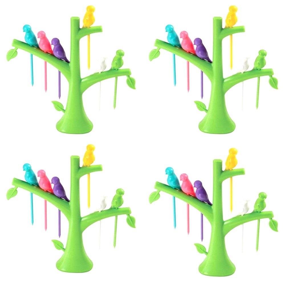 Bring home this Birdie and make your child fruit eating fun.Eat fruits without using hands with the help of this Bird shape fruit fork set. The set comes with six fruit forks with a stand. Made of high-quality food grade plastic.Being colorful, you will NOt mix these forks. When NOt in use, this fruit fork set makes a cute dining table decorative piece.The six forks come in the shape of Hummingbirds and the stand is shaped like a tree branch.