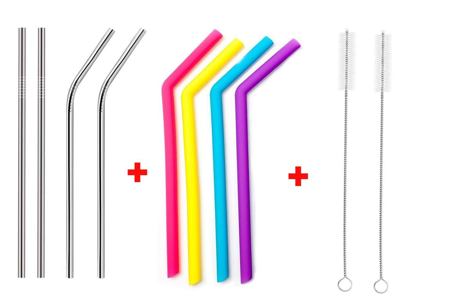 Your Brand Food Grade Silicone Straws(4pc), Stainless Steel Straws(4pc) & Straw Cleaning Brush(2pc)