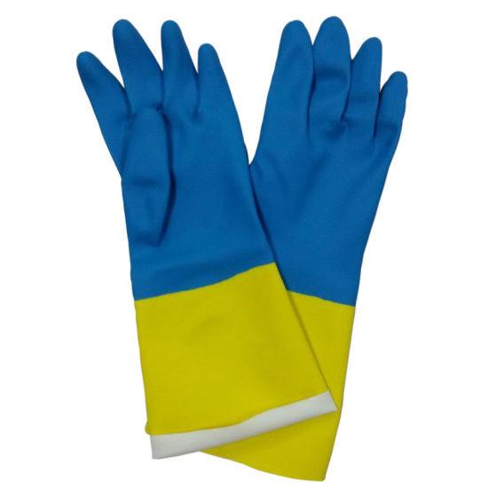 671 - Dual Color Reusable Rubber Hand Gloves (Yellow + blue) - 1 pc