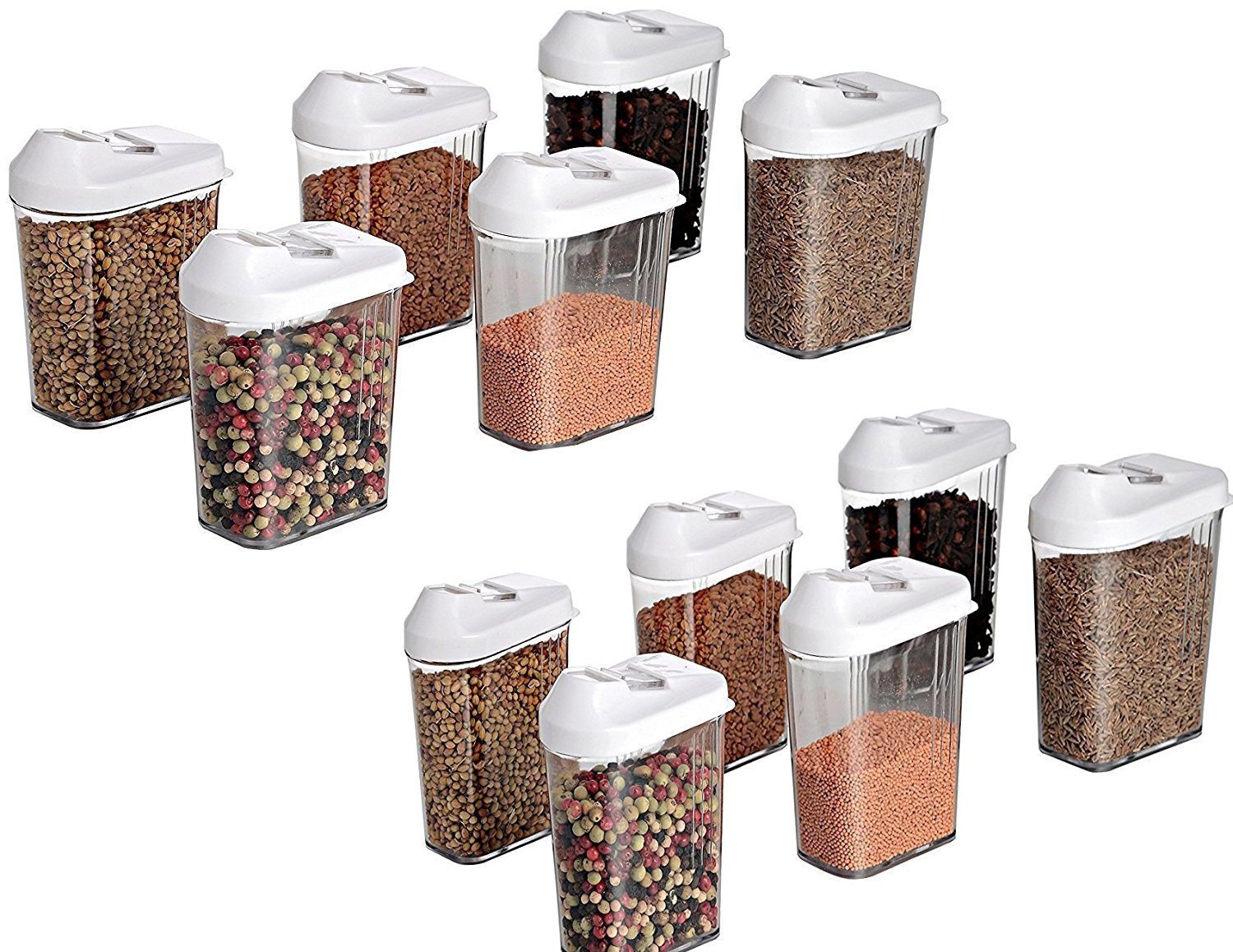 Perfect Life Ideas Sleek design Cereal Dispenser Jars is ideal for preserving foods like Pasta, Cereal, Rice in Kitchen. Cereal Jars come in a pack of 12 makes your kitchen more attractive. The containers have a small grip and a wide dispenser for easily dispensing your contents. It has an easy opening lid with 80% air tight which keeps the food fresh.