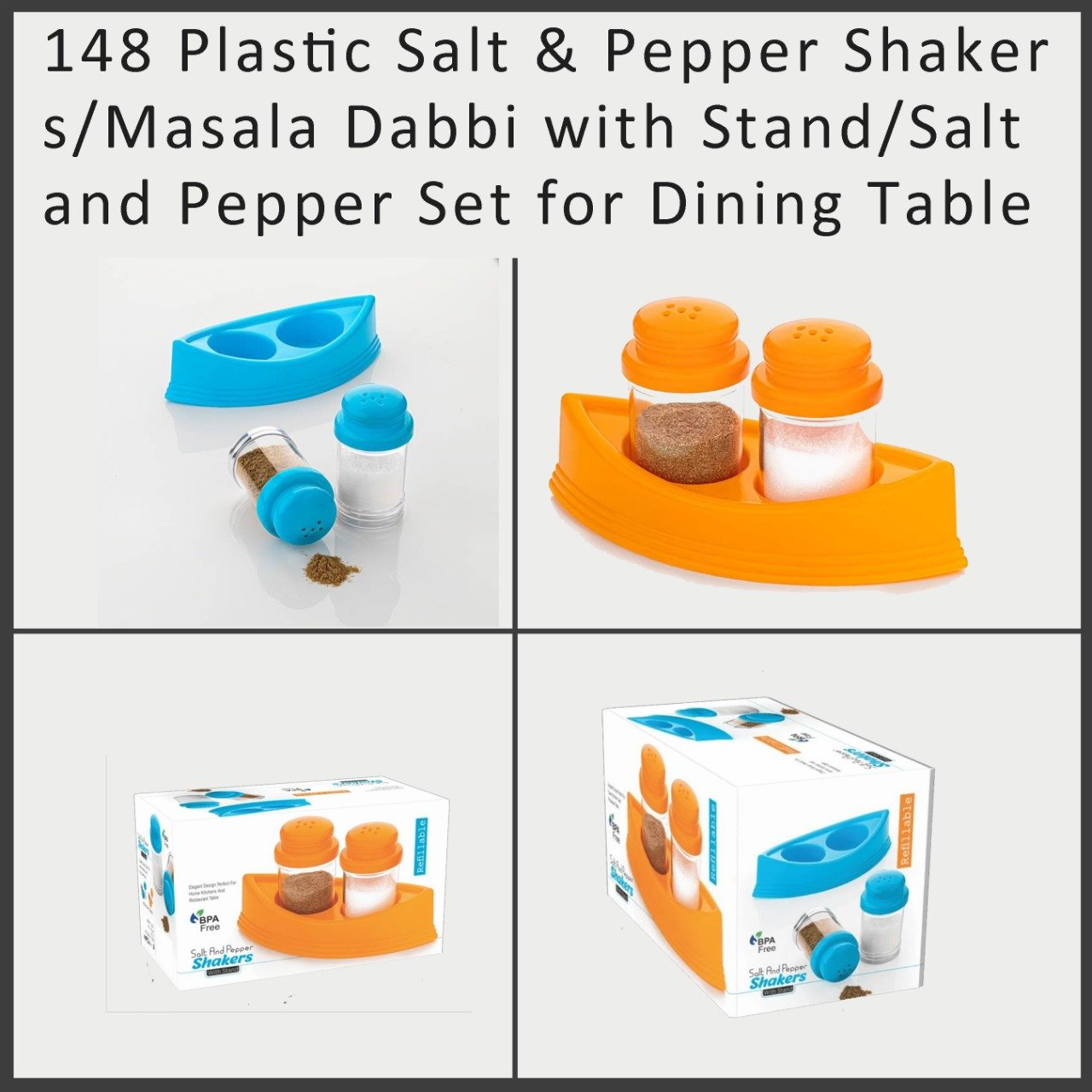 Plastic Salt & Pepper Shakers/Masala Dabbi with Stand/Salt and Pepper Set for Dining Table