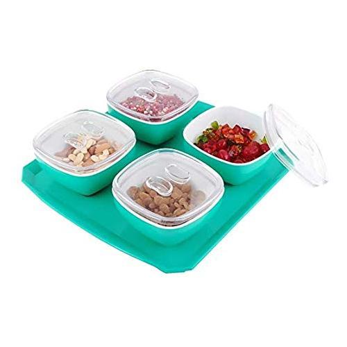 The food grade container set is a perfect way to preserve the freshness and crunch of dry fruits. It can also be used to store other edible items. A matching tray is provided that can be used for serving purposes. This makes a wonderful gift set for your loved ones on several special occasions.
