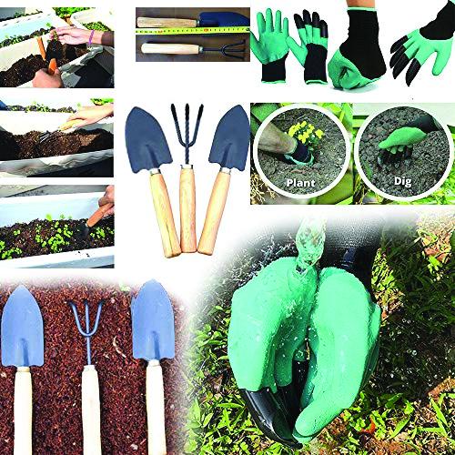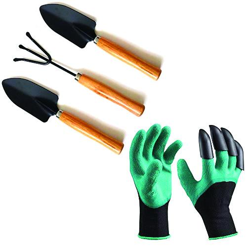 DeoDap Gardening Hand Cultivator, Big Digging Trowel, Shovel & Garden Gloves with Claws for Digging & Planting