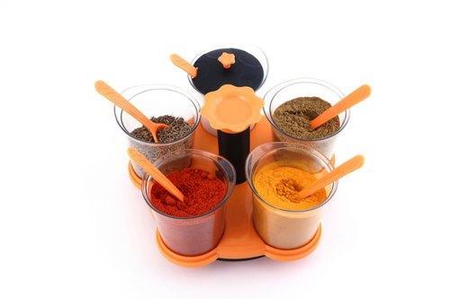 The spice rack will make your life easier by helping you organize all your masalas and spices and getting a snug place for all of them. Specially designed revolving base facilitates easy access. The holder has 5 separate compartments/sections to hold 5 items. Keep your favorite spice or sugar fresh and odor-free and prevent the ash can be used to hold a variety of condiments like salt, pepper, sugar, spice etc.