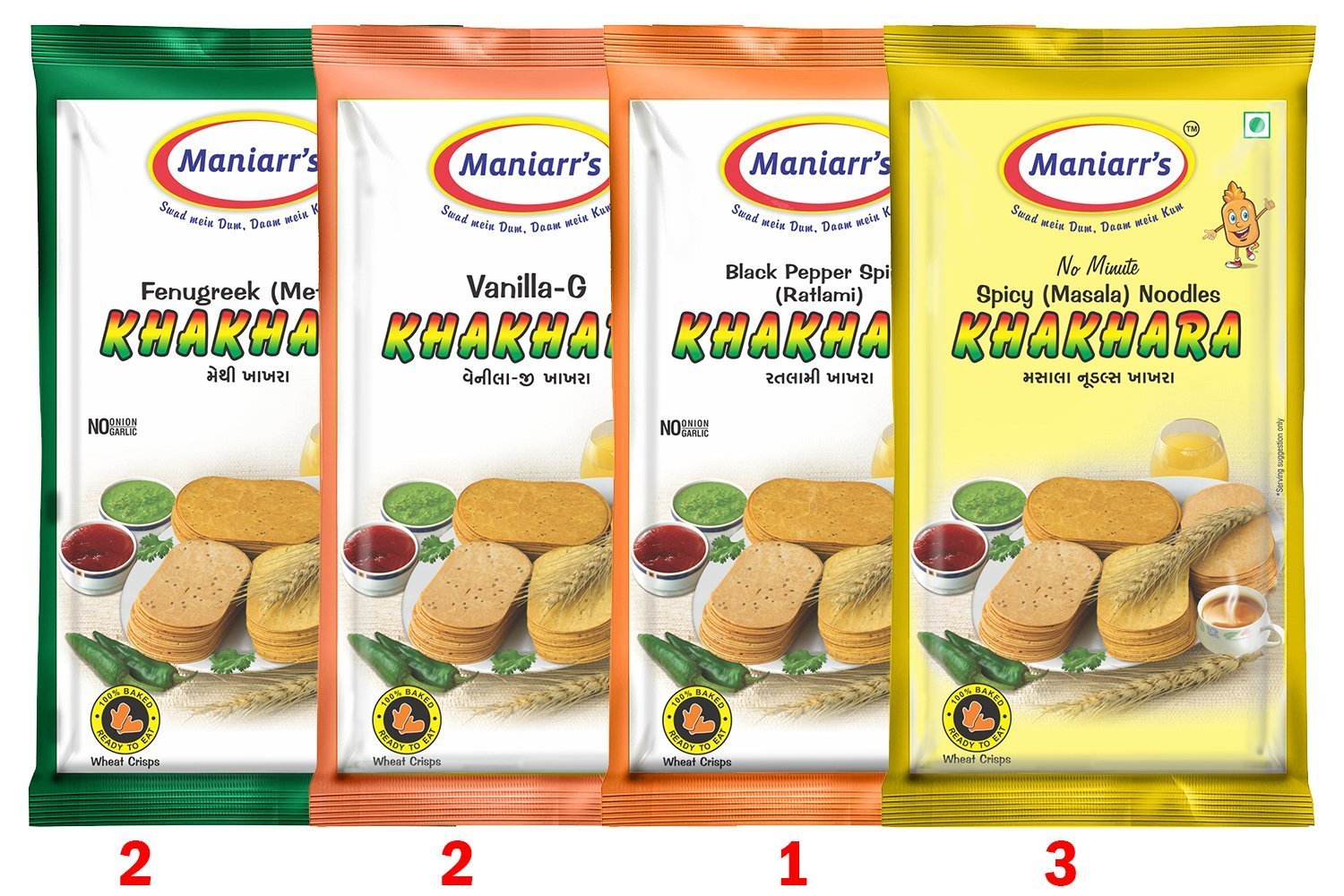Maniaars Khakhra Snacks Masala Noodles, Ratlami, Vanilla & Methi Flavour Khakhra