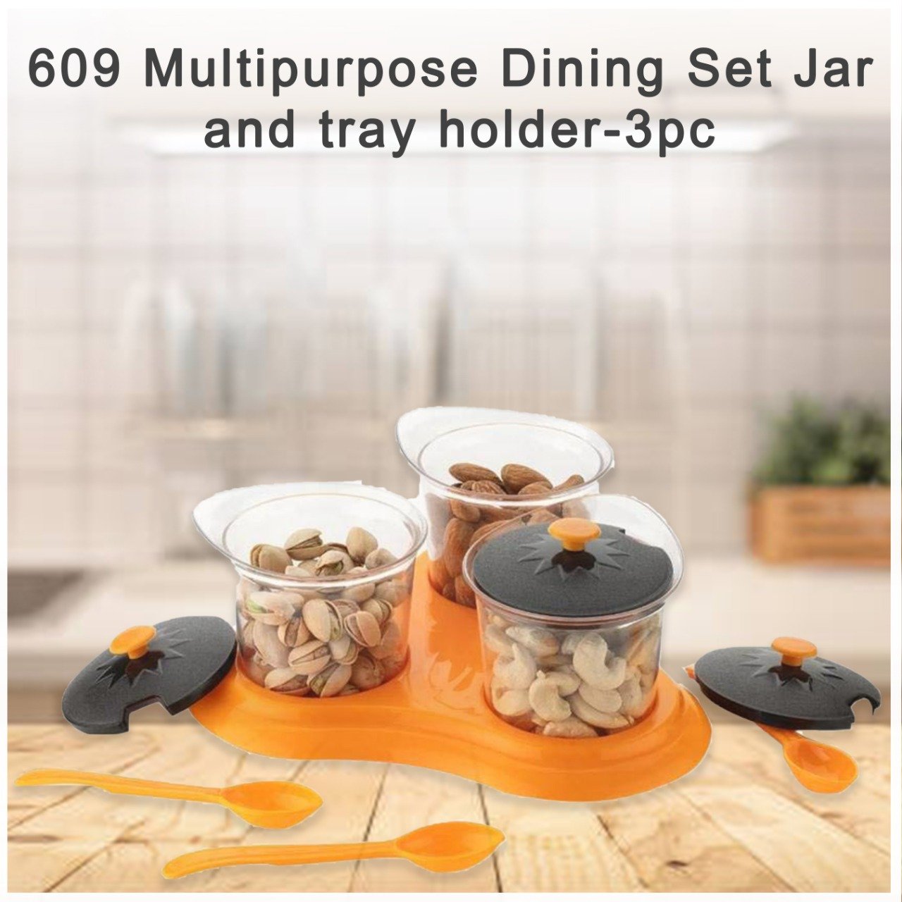609 Multipurpose Dining Set Jar and tray holder, Chutneys/Pickles/Spices Jar - 3pc