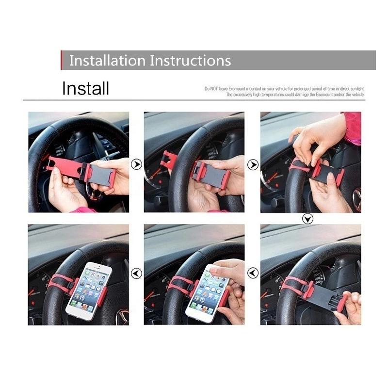 Universal Portable Steering Wheel Mobile Phone Holder / Mount / Clip / Buckle Socket Hands Free on Car Steering Wheel for Max 5.5 Inch / 13.97 Cm Screen Size The device is embedded with soft silicone pad, which protects your phone from scratching. Easy Installation, No need of extra tools, just clip the Elastic adjustable mount to your steering wheel in a second! the size of steering wheel won't effect the installation.